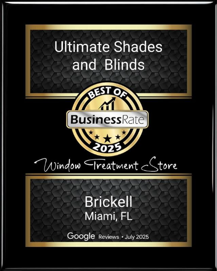 We are pleased to inform you that Ultimate Shades and Blinds has been officially recognized as the BEST of 2025 Brickell Award Winner in the Window Treatment Store category – an honor based on verified data from Google Reviews, as analyzed and certified by BusinessRate.